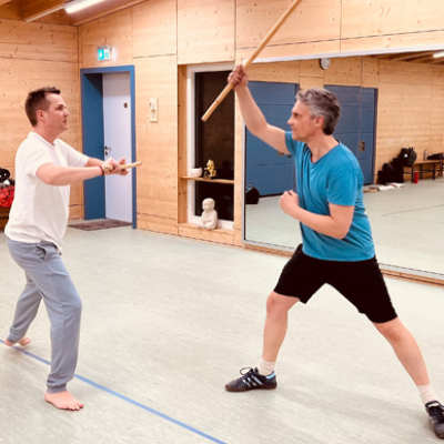 Nach einem Warm up und paar Einführungsübungen mit dem Stab lernst Du schon an einem 1/2 Tag drei Hiebe und Paraden und wirst mit Deinem Fechtpartner richtig fechten können. Zuvor werden wir dir alles an Wissen und Können beibringen, was Du für ein Gefecht im „Stabfechten“ brauchst, damit Du am Ende mit vielen neuen Eindrücken und Aha-Erlebnissen belebt nach Hause gehen kannst.